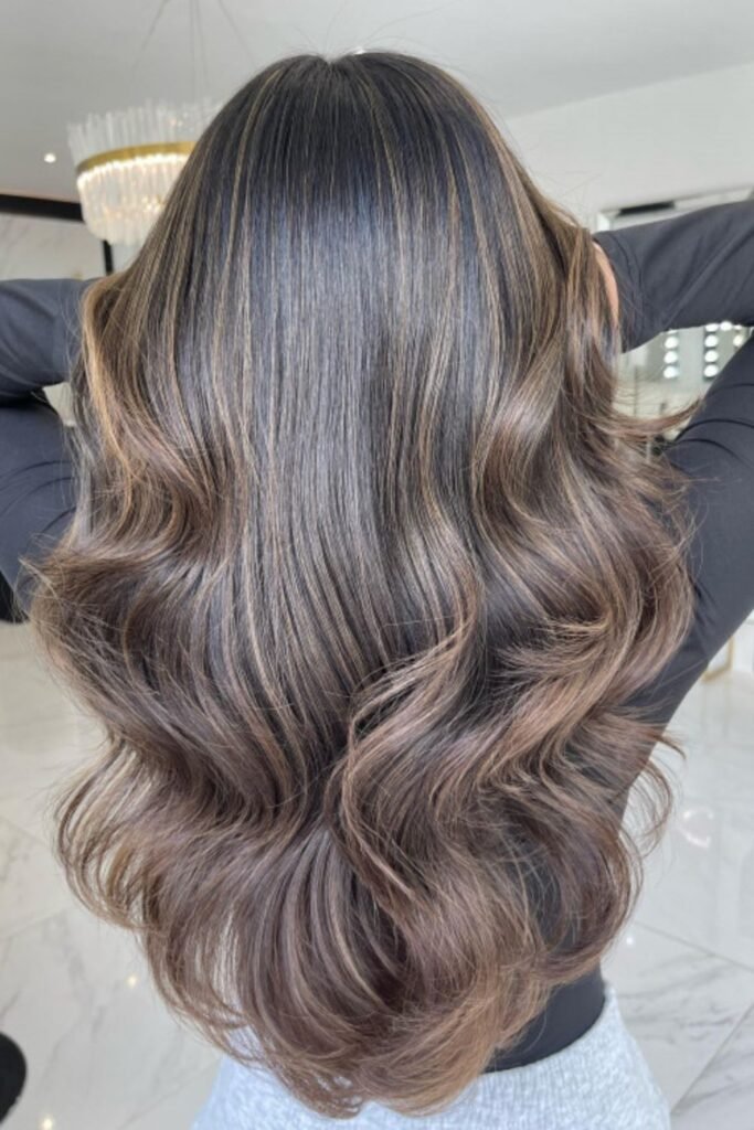 For something richer, try a dark caramel balayage that leans deeper and moodier. It adds warmth without making the hair look too light. This is a gorgeous option if you want dimension that still feels sultry.
