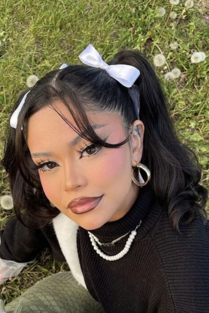 Split your hair into two ponytails and tie bows around each one. It’s playful, a little girly, and honestly just really fun to wear.