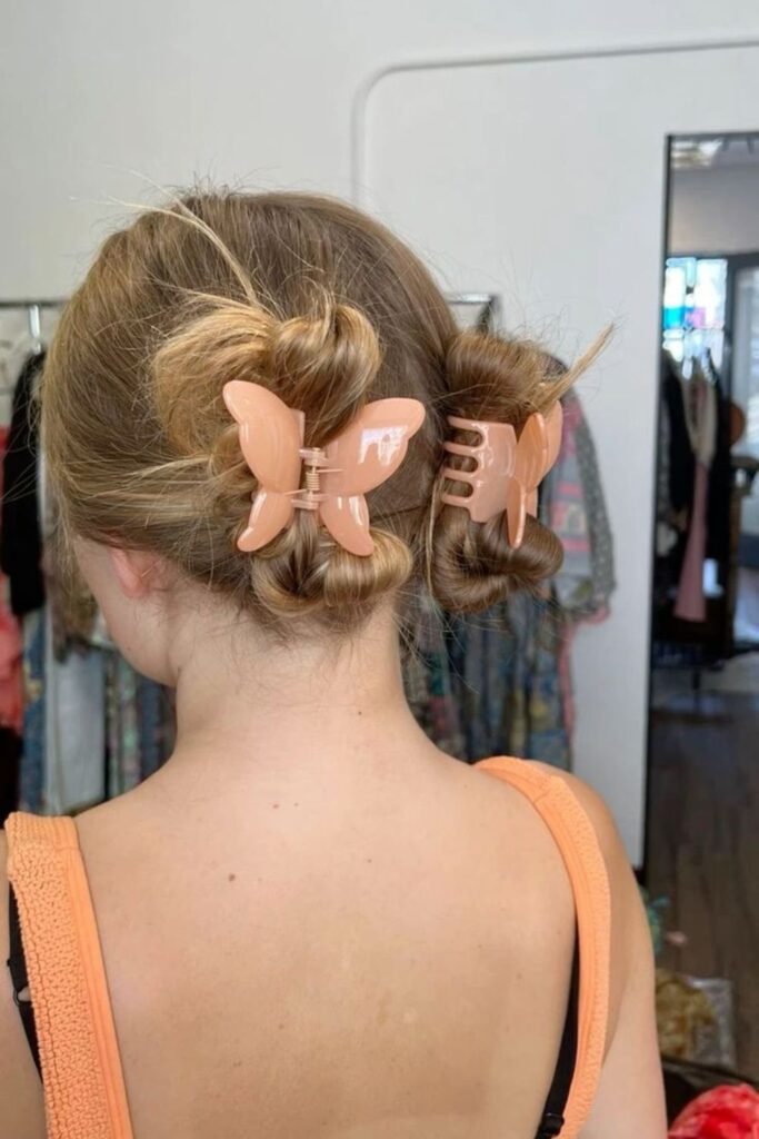 Instead of one claw clip moment, go for two. Split your hair down the middle and twist each side into a mini bun, securing each with a claw clip. It’s playful, a little unexpected, and honestly way cuter than you’d think.