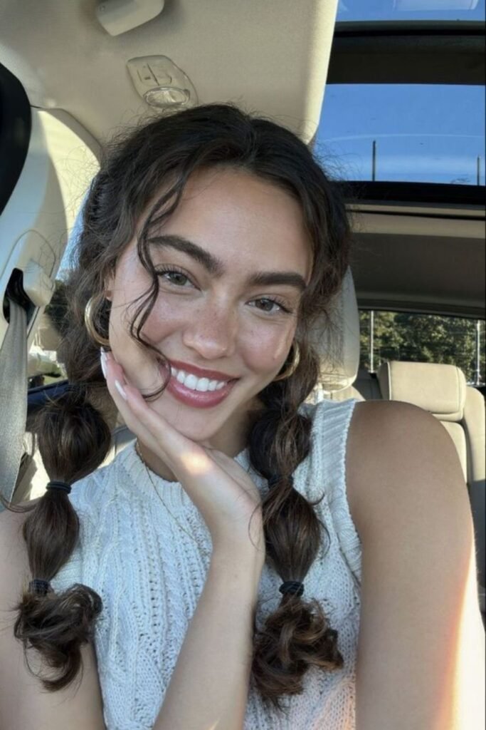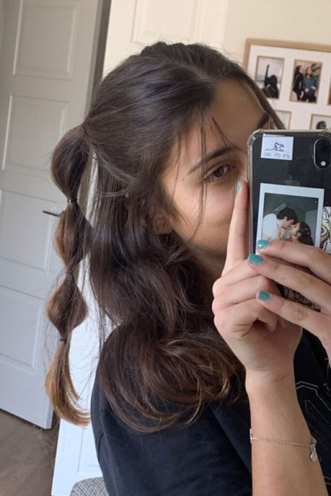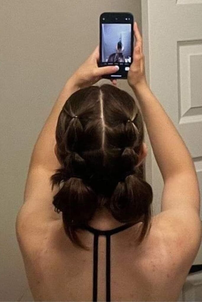Part your hair straight down the middle and create two bubble braids on each side. It’s such a cute, symmetrical look that works for casual days but still feels styled.