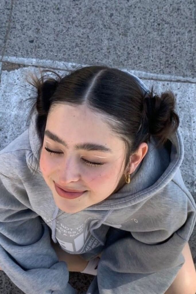 Think of this as the chill version of space buns. Keep them low and a little messy for that effortless feel. You can loosen a few strands to keep it soft and not too structured.
