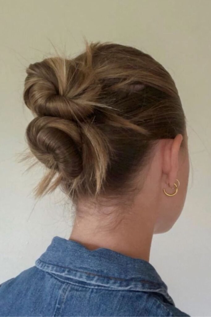Double buns are the upgraded version of childhood pigtails. Part your hair, twist each side into buns, and you’ve got a playful look that’s still totally trendy.